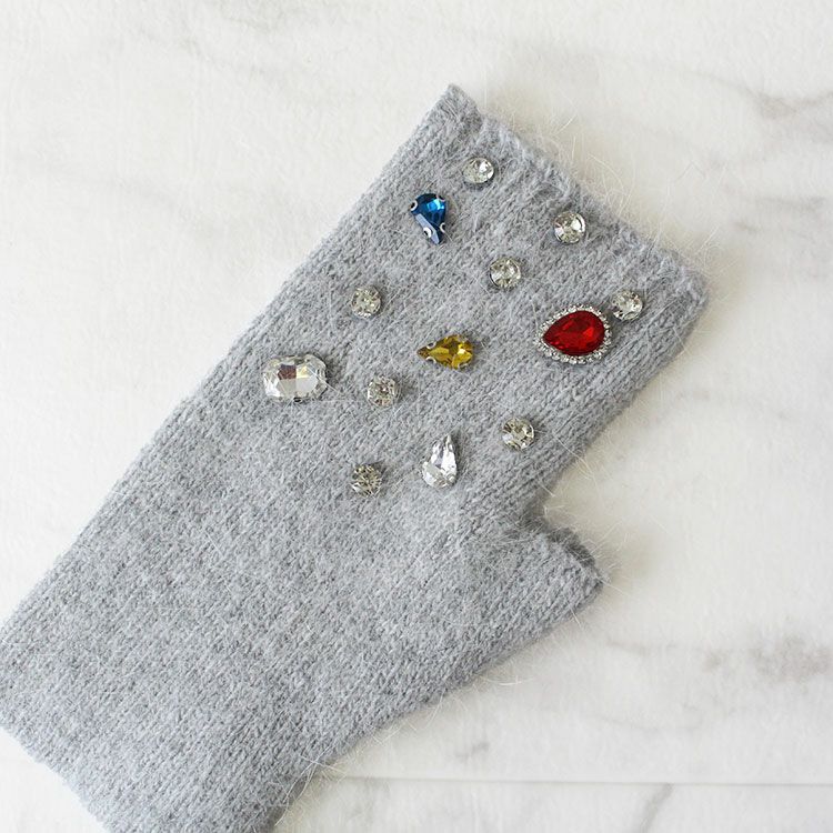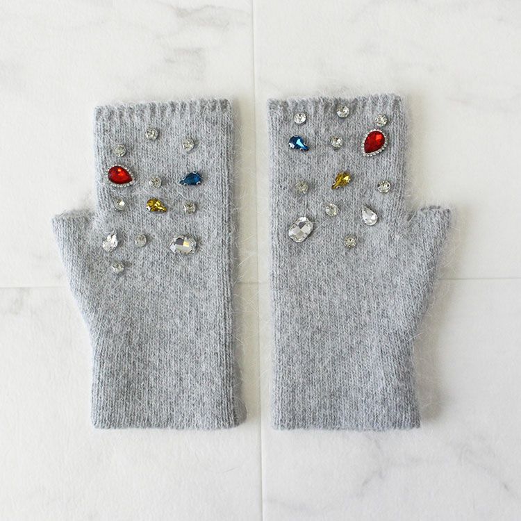 ビジュー付きフィンガーレスタイプニットグローブ
