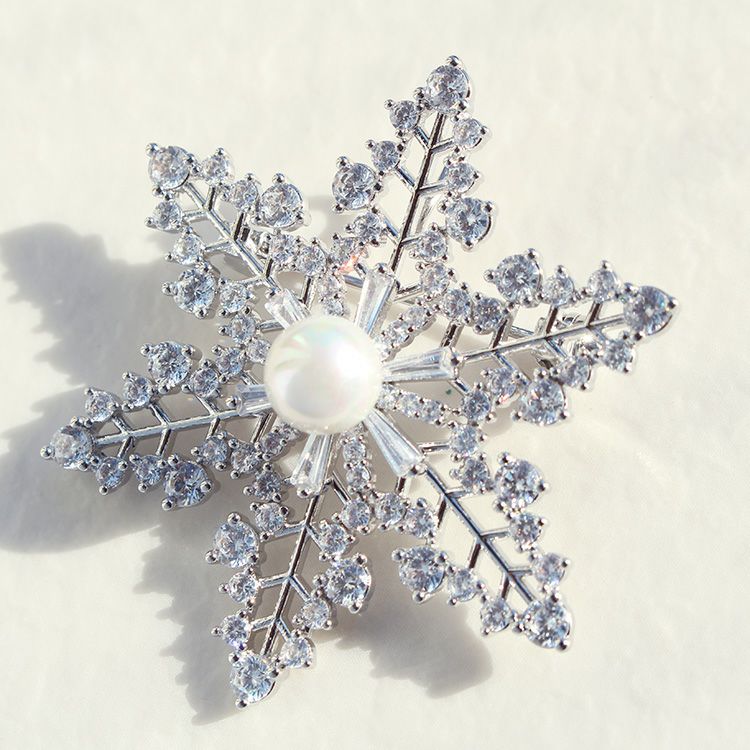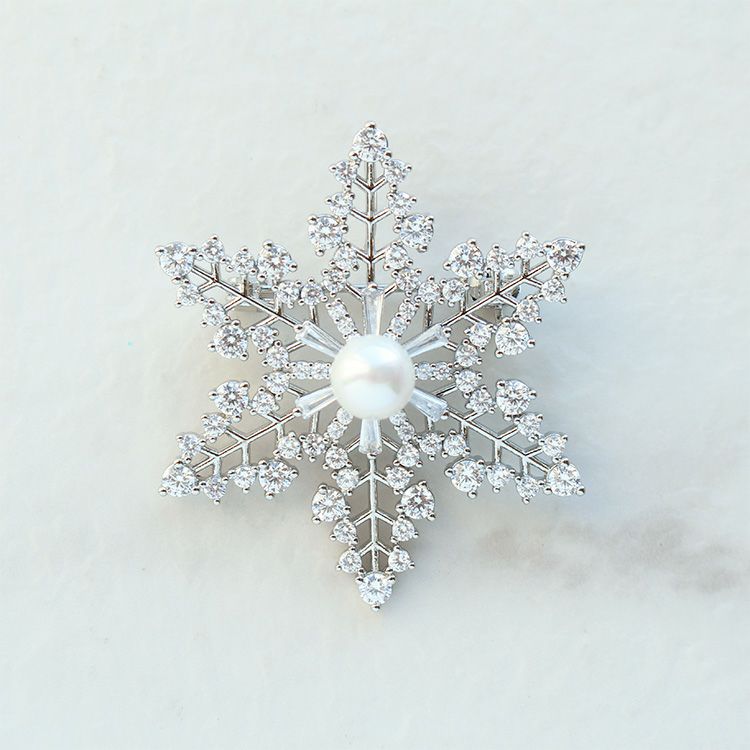 スノーフレークモチーフキュービックジルコニアブローチ
