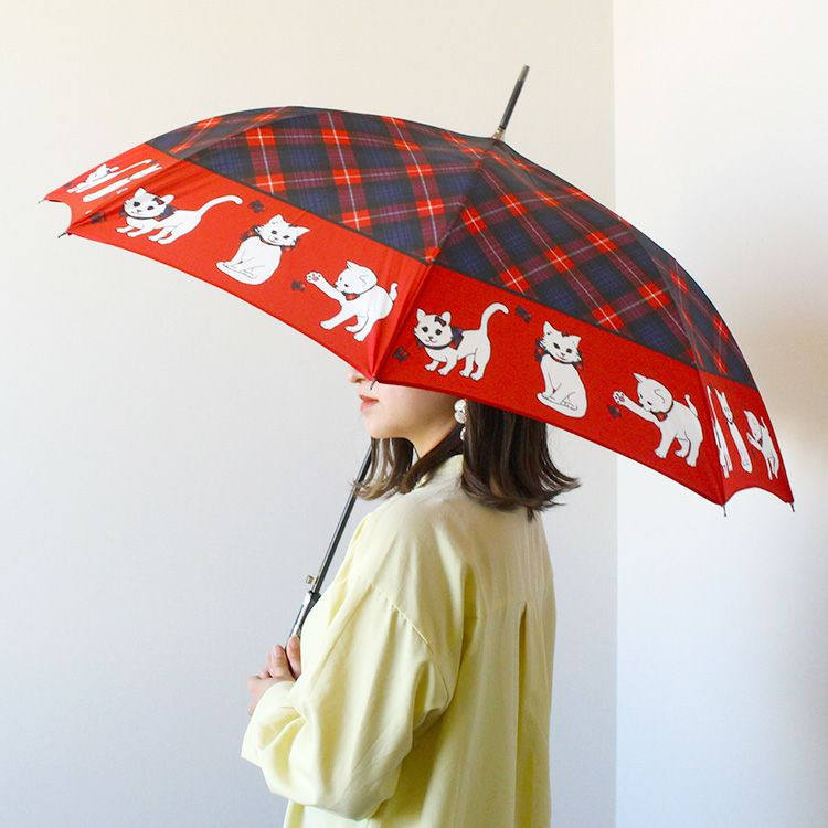 【Guy de jean】ネコモチーフ×チェック晴雨兼用長傘/2243003-