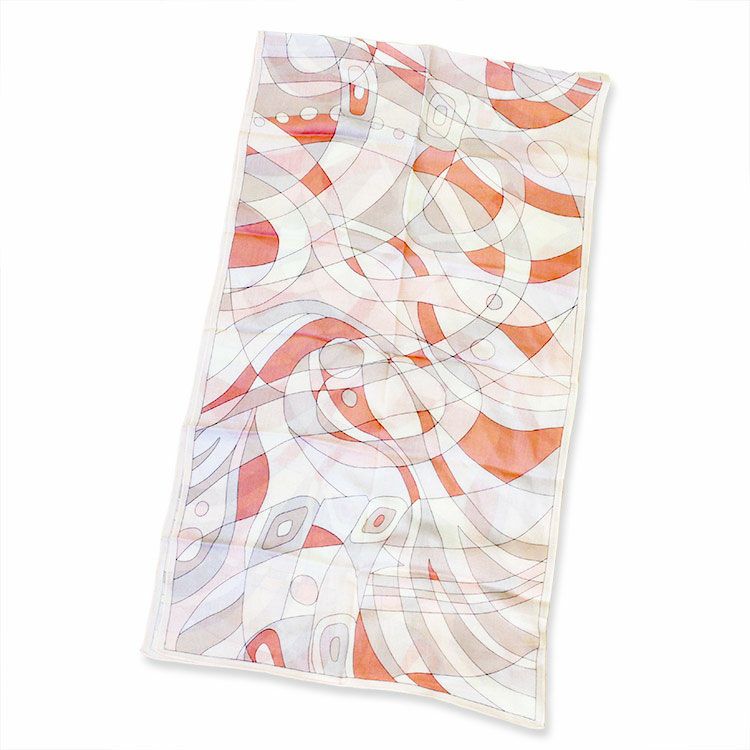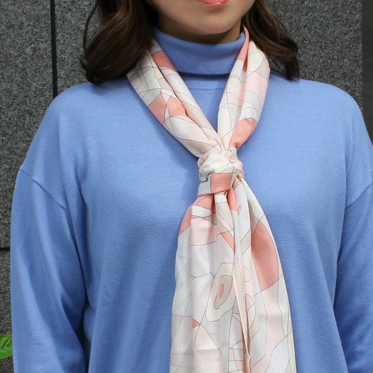 シルクのような肌触りが特徴のモダール素材を使ったストール。抽象的な幾何学模様をパステル調にしたことでエレガントなデザインに仕上がっています。