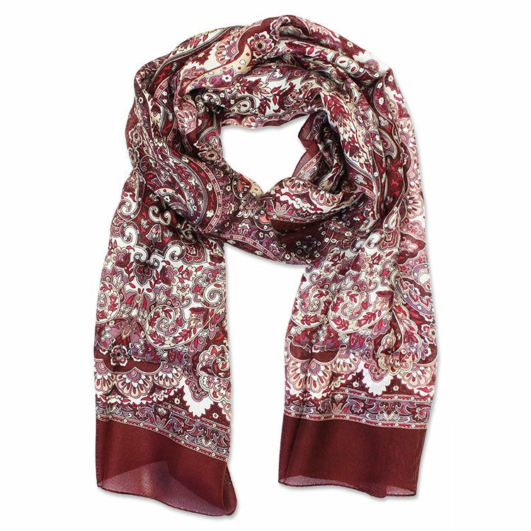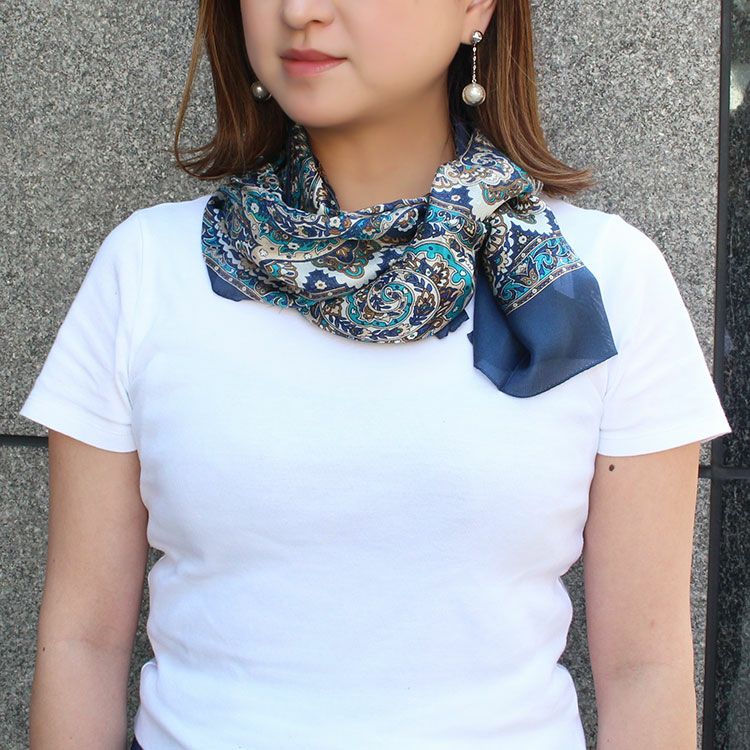 スタイリングに華やかなアクセントを加えるペイズリー柄のストール。 首にかけるだけで彩りをプラスしてくれるのでワンランク上の大人なコーディネートが叶います。