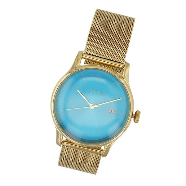 ツヤ感のあるヴィヴィッドなカラーフェイスとゴールドのメタルベルトがオシャレなウォッチ。アジャスタブルクラスプ仕様のため、コマ詰め不要なのでプレゼントにもオススメです。