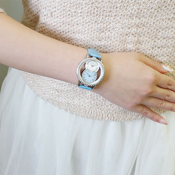 クリスタルガラスエレメンツ ビッグフェイスデュアル腕時計/9170034