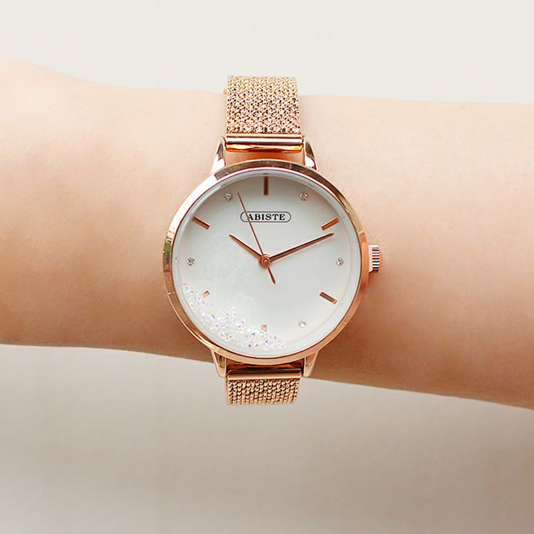 ビジューラウンドフェイスメッシュベルト腕時計/9191006
