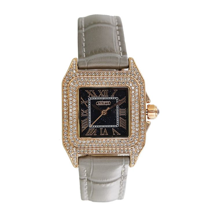 クリスタルスクエアフェイス革ベルト腕時計/9210002