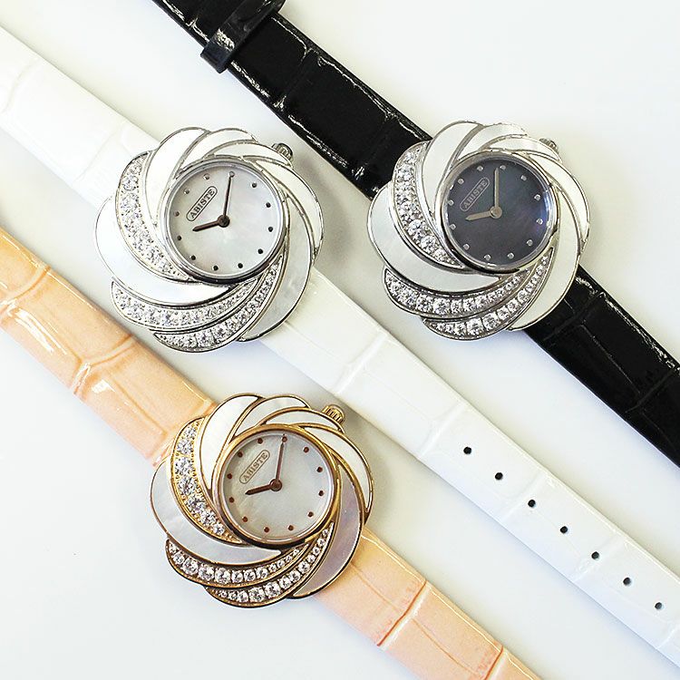 ローズモチーフキュービックジルコニア細ベルト腕時計/9161001