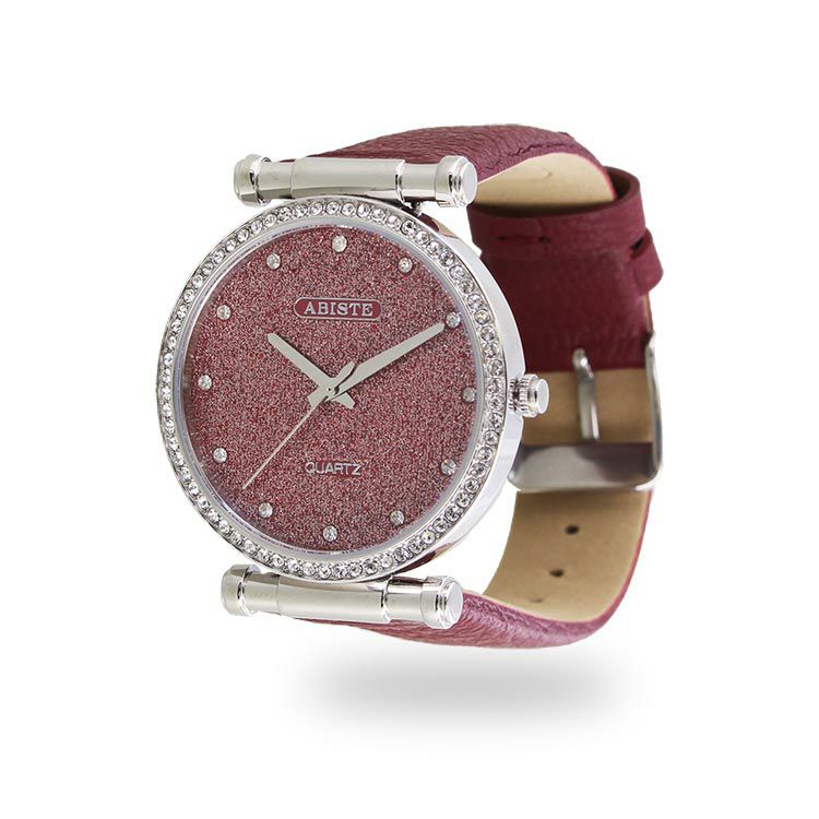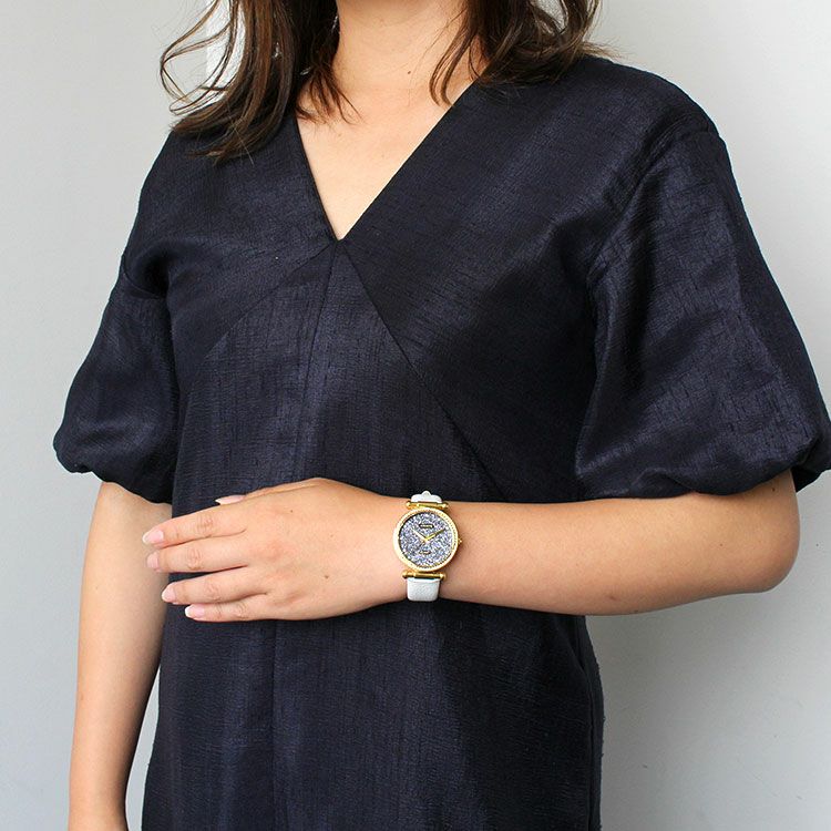 フェイスとフェイスの周りにはクリスタルガラスをあしらい、アビステらしい煌めきがたっぷりのラウンドフェイス腕時計。革ベルトにすることで派手になりすぎず、大人っぽくファッショナブルな印象に。 カジュアルなファッションにも、パーティーなどのオケージョンシーンでもお使いいただけるデザインです。