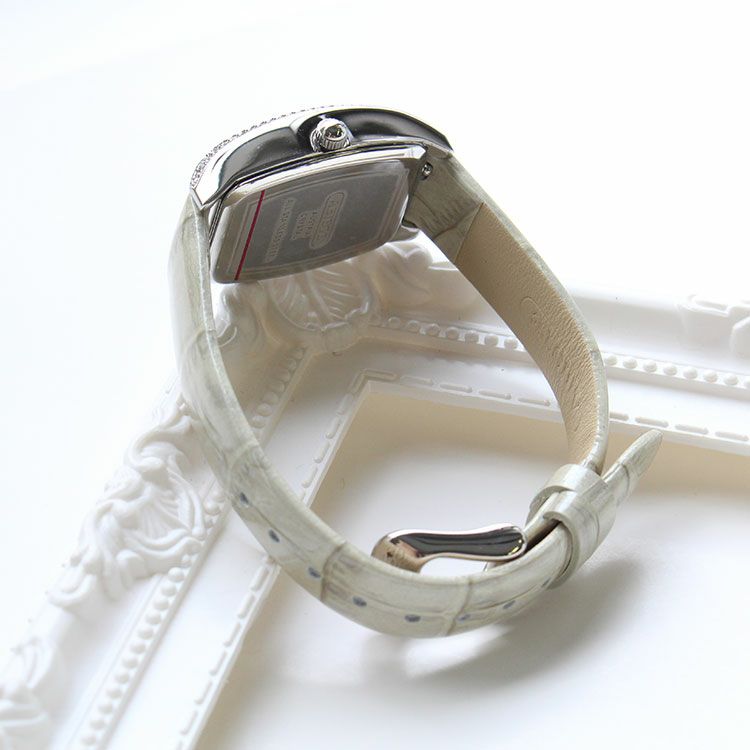 ラウンドフェイスクリスタル革ベルト腕時計/9210011