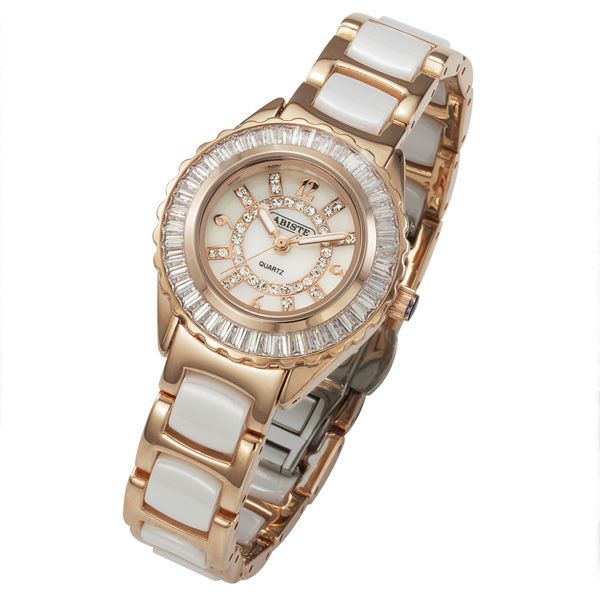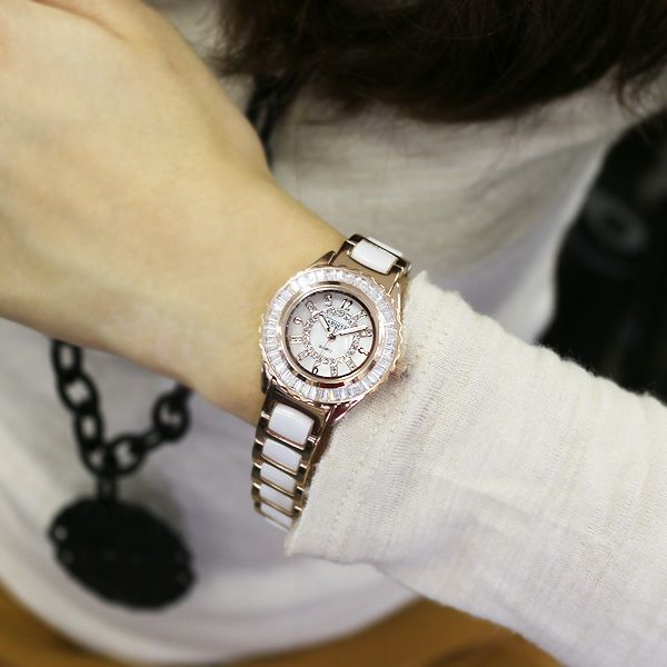 ラウンドフェイスCZセラミックベルト腕時計/9400084