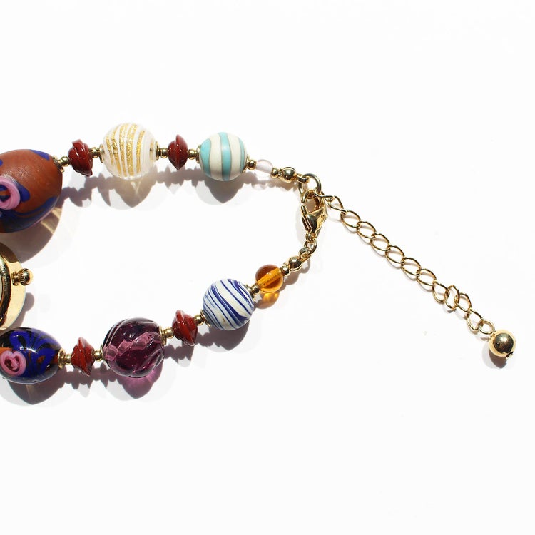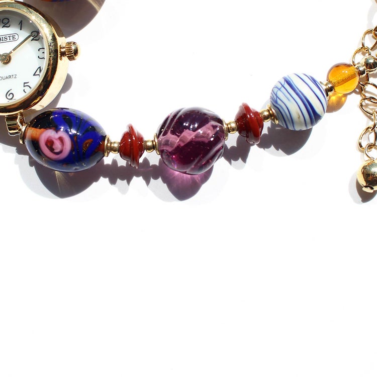 様々なベネチアンガラスビーズの組み合わせが美しいブレスレット時計。