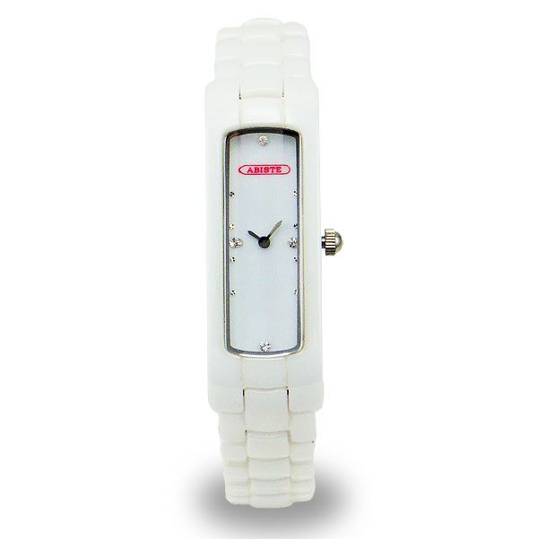 セラミック製の時計。金属製よりも軽く、ミルキーな色合いも可愛いので、ブレスレット感覚で着けられます。大人のカジュアルスタイルにオススメ。
