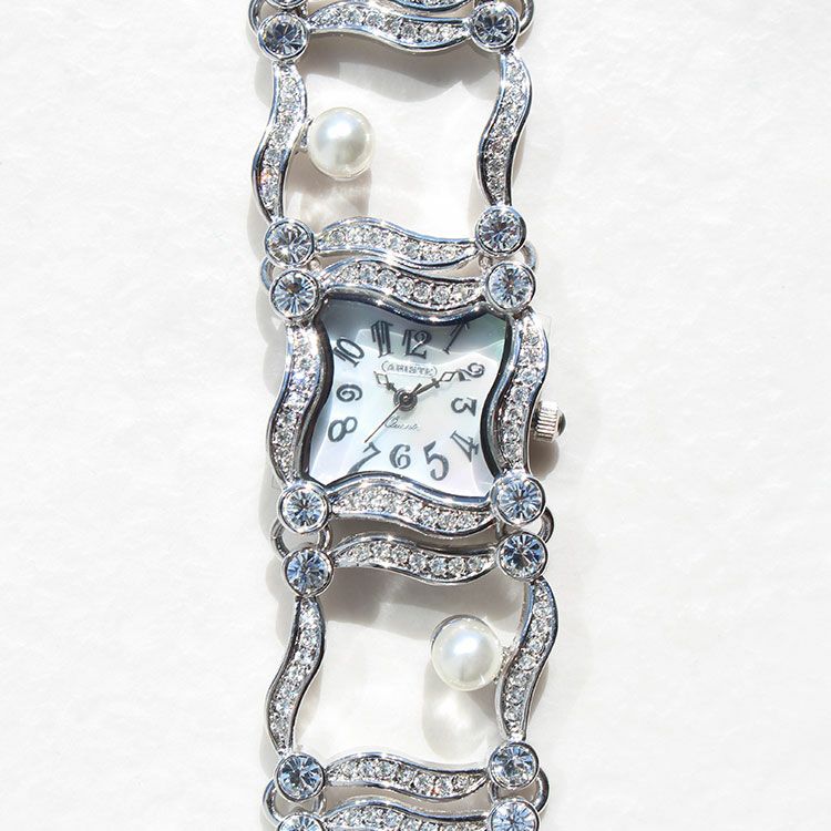 パール×チェーンスクエアブレスレットウォッチ/9220066G【美人百花 掲載】