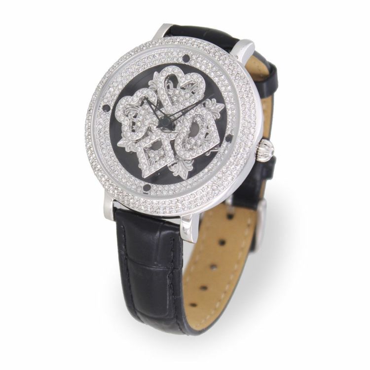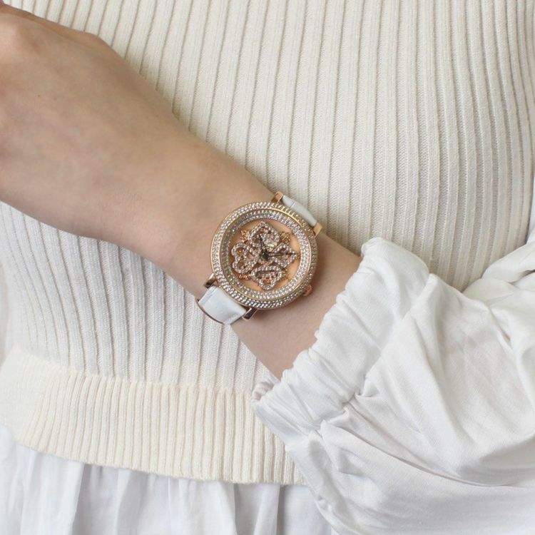 ベゼルやリューズまでクリスタルガラスを贅沢にあしらったラグジュアリーなベルト時計です。