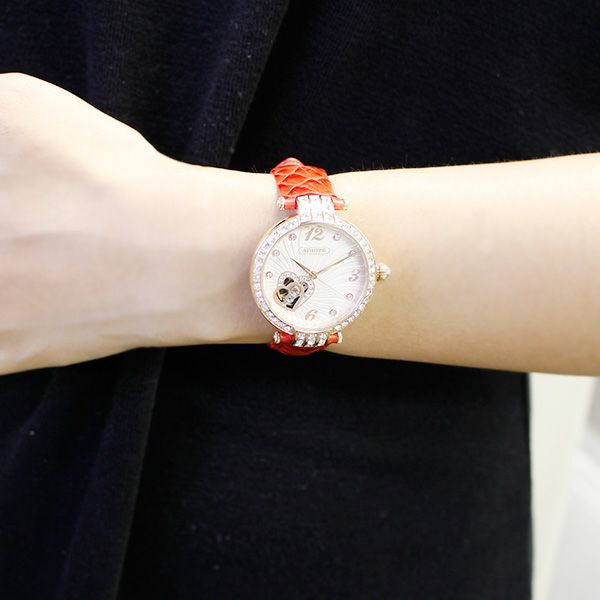 自動巻ハートモチーフラウンドフェイスベルト腕時計/9161002