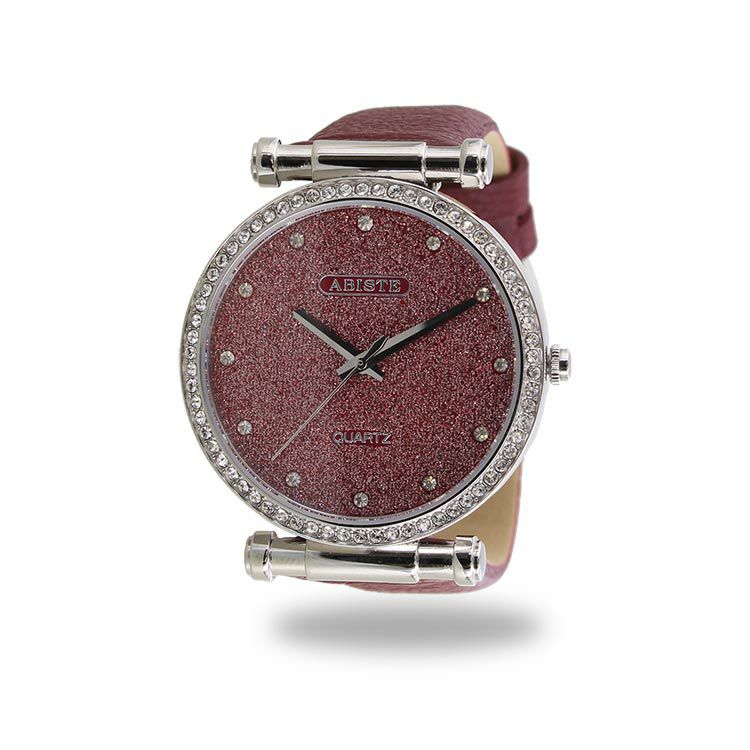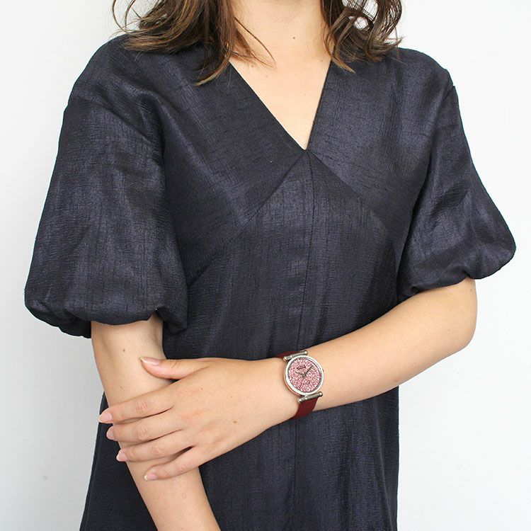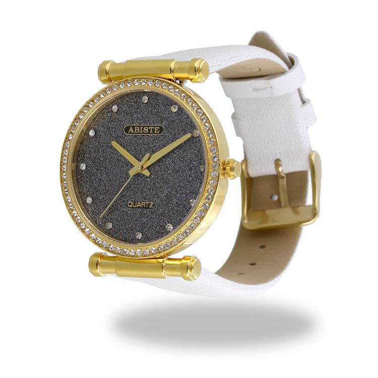 フェイスとフェイスの周りにはクリスタルガラスをあしらい、アビステらしい煌めきがたっぷりのラウンドフェイス腕時計。革ベルトにすることで派手になりすぎず、大人っぽくファッショナブルな印象に。 カジュアルなファッションにも、パーティーなどのオケージョンシーンでもお使いいただけるデザインです。