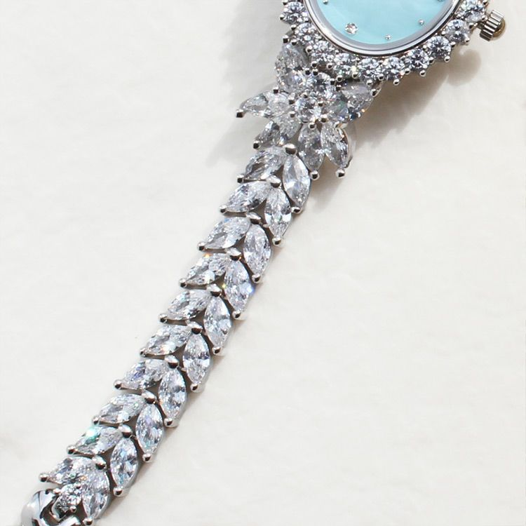 ベゼルやベルトには大粒のキュービックジルコニアをぎっしりと配し、ジュエリーさながらの華やかさは身につければ高揚感を感じさせてくれます。