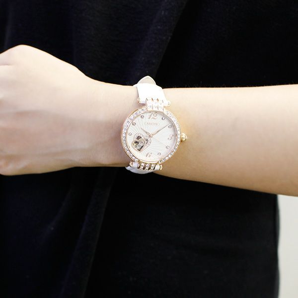 自動巻ハートモチーフラウンドフェイスベルト腕時計/9161002