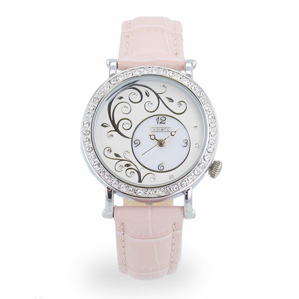 ラウンドフェイスクリスタルガラスデザインベルト腕時計/9160026