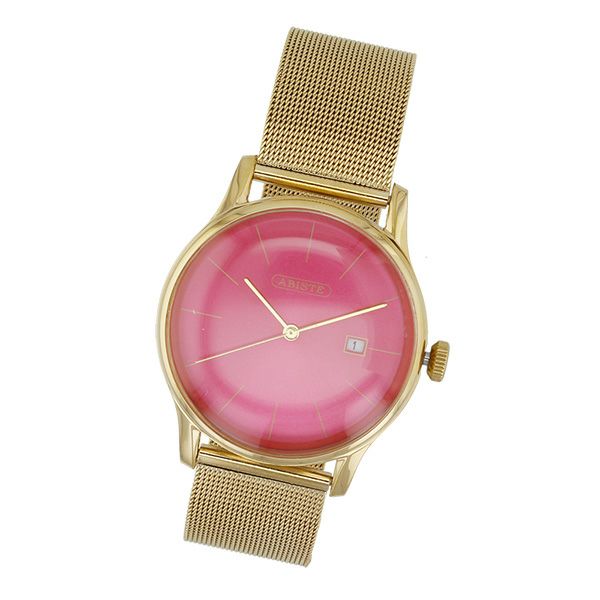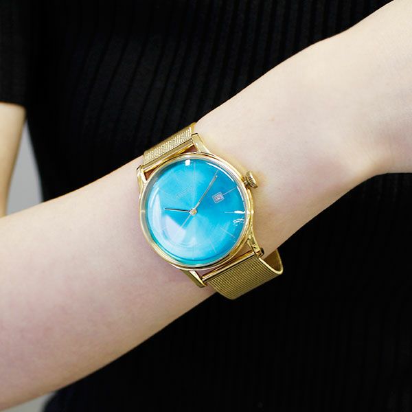 ツヤ感のあるヴィヴィッドなカラーフェイスとゴールドのメタルベルトがオシャレなウォッチ。アジャスタブルクラスプ仕様のため、コマ詰め不要なのでプレゼントにもオススメです。