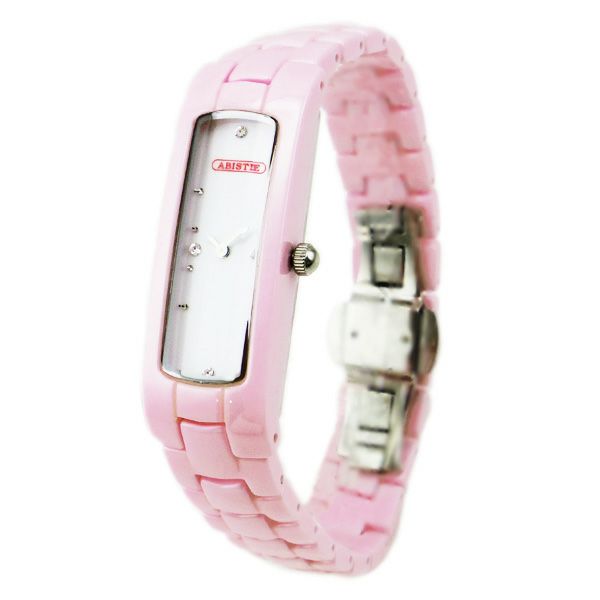 セラミック製の時計。金属製よりも軽く、ミルキーな色合いも可愛いので、ブレスレット感覚で着けられます。大人のカジュアルスタイルにオススメ。