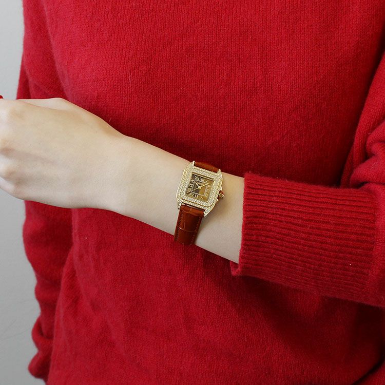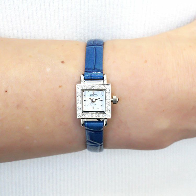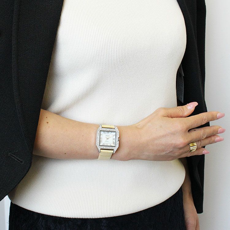 クリスタルスクエアフェイス革ベルト腕時計/9210002