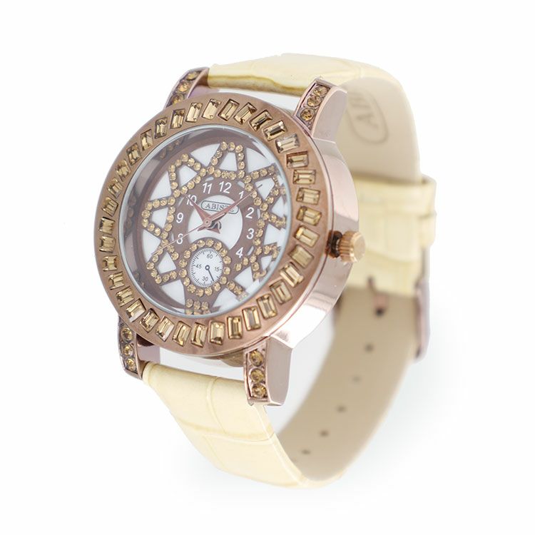 ラウンドフェイスクリスタル革ベルト腕時計/9210012