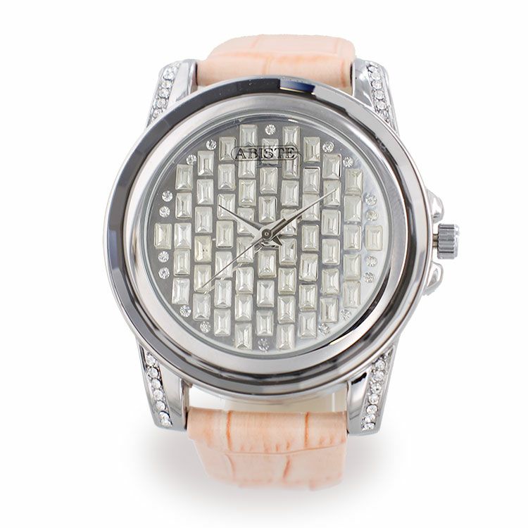 ラウンドフェイスクリスタル革ベルト腕時計/9210014