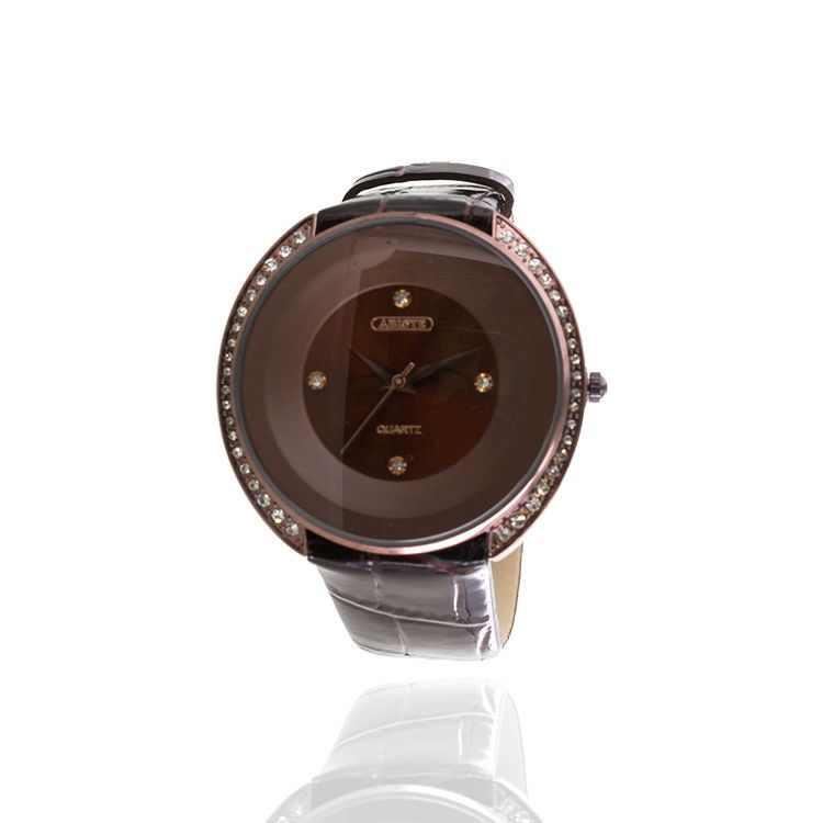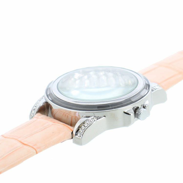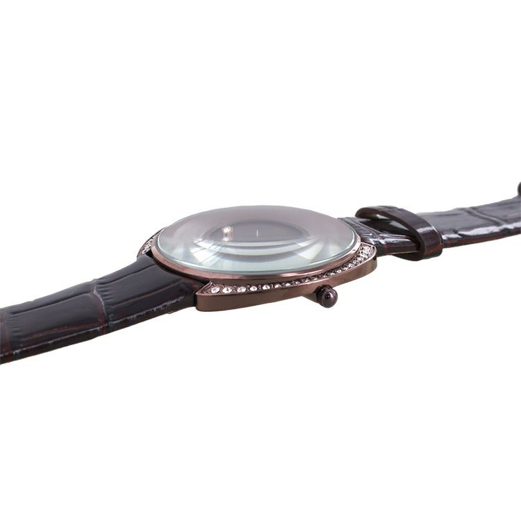 クリスタルガラスラウンドフェイス牛革ベルト腕時計/9020003