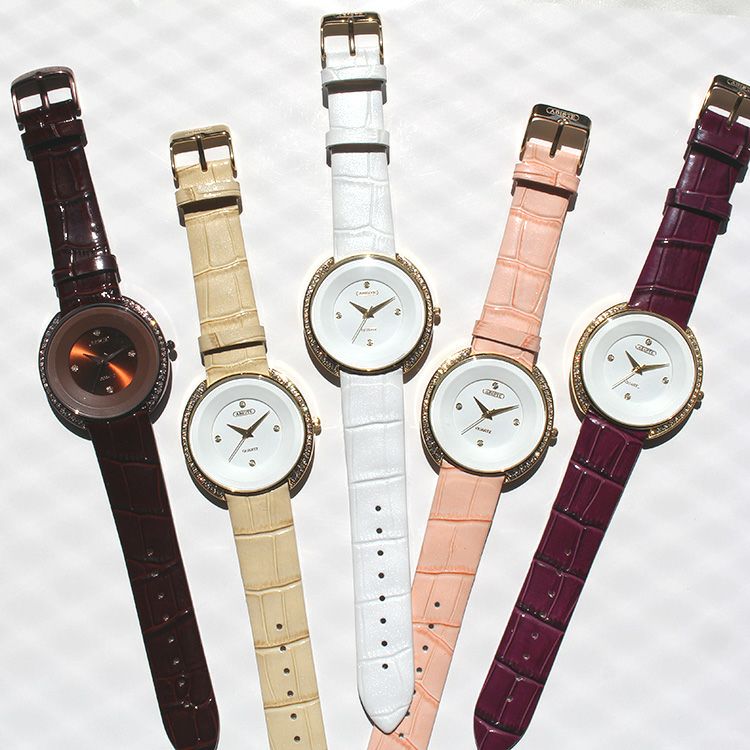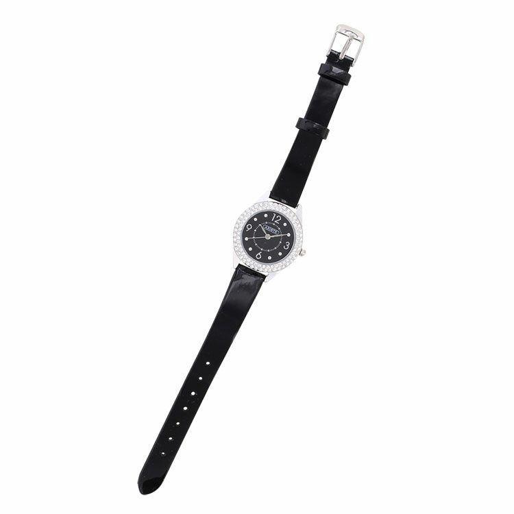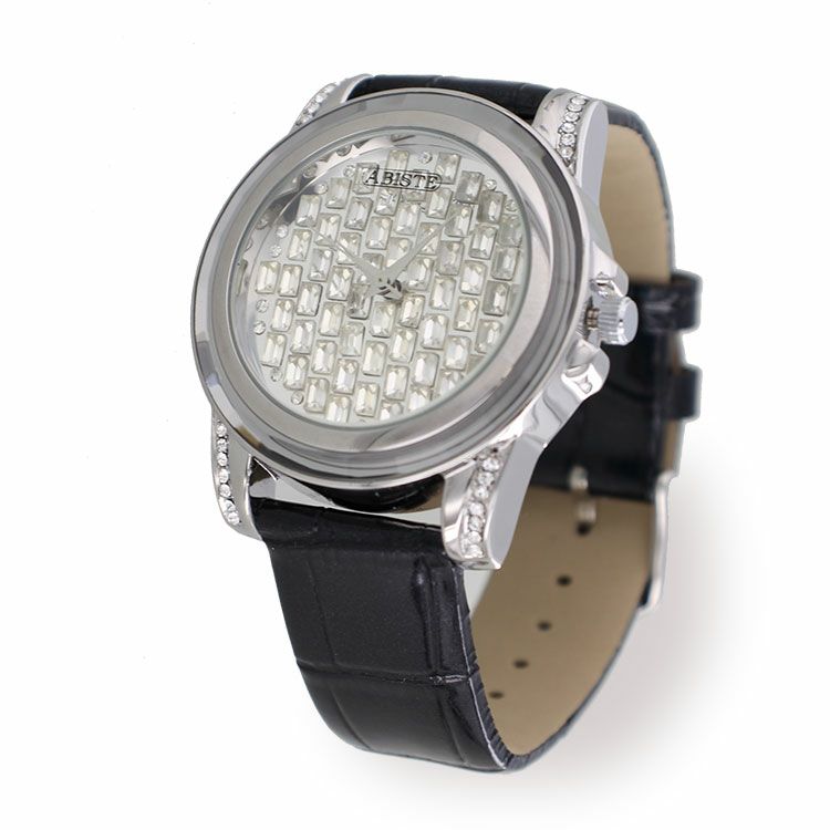 ラウンドフェイスクリスタル革ベルト腕時計/9210011