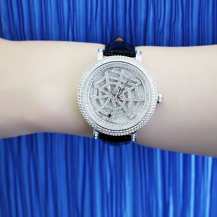 スパイダーウェブクリスタルガラス革ベルト腕時計/9210003