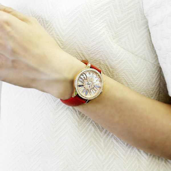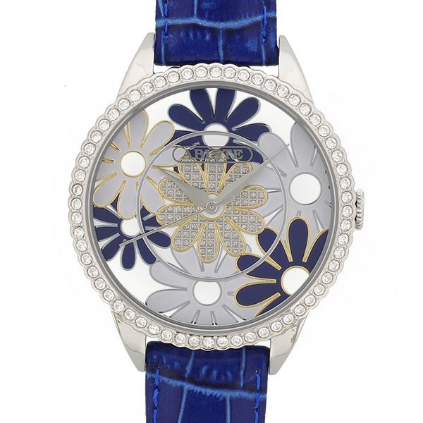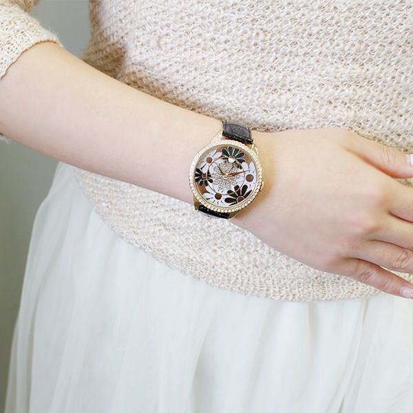 フラワーモチーフスケルトンビッグフェイス クリスタルガラスエレメンツ腕時計/9170032