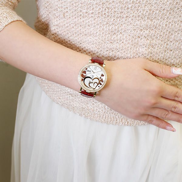 ハートモチーフ クリスタルガラスエレメンツ ビッグフェイスデュアル腕時計/9170033
