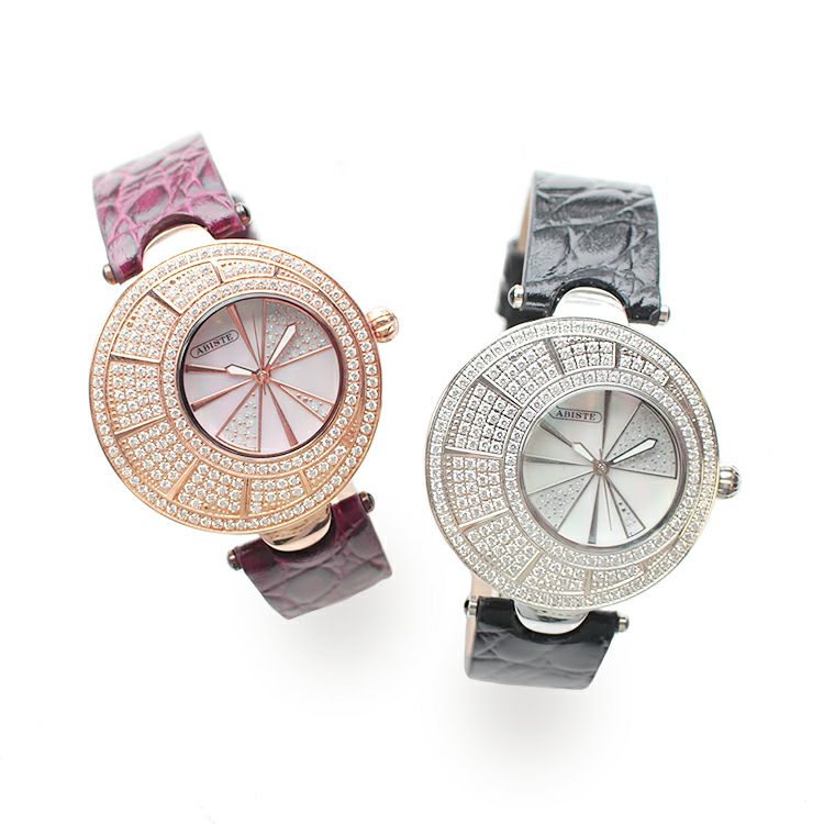 キュービックジルコニアラウンドフェイスベルト腕時計/9191001