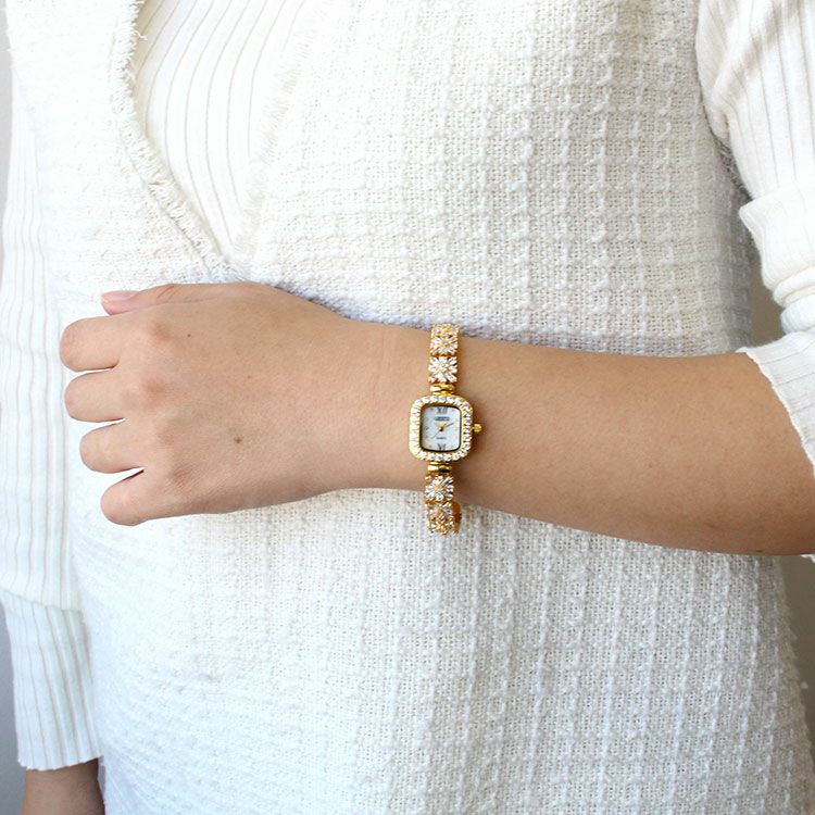 クリスタルガラススクエアフェイスフリーアジャスタベルト腕時計/9160074