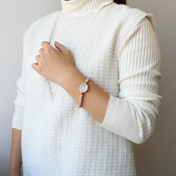 オーバルフェイスクリスタルガラスベルト腕時計/9150060
