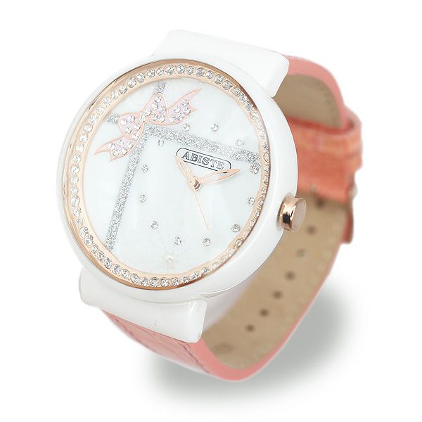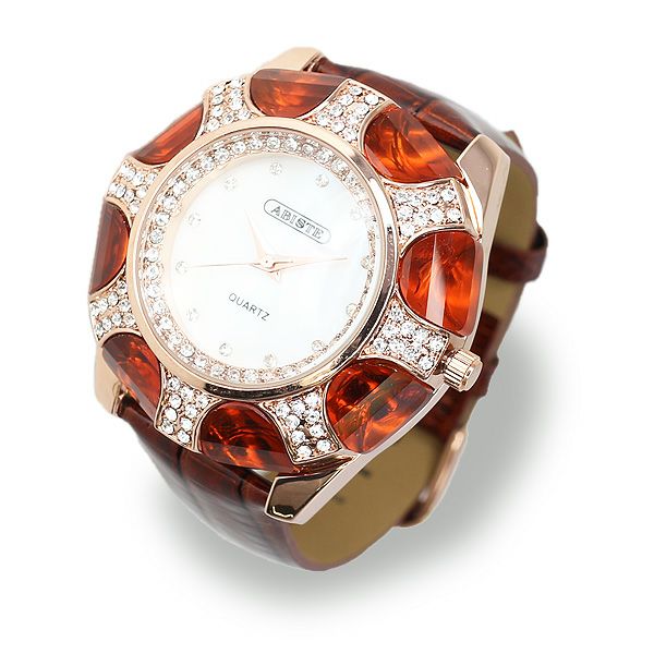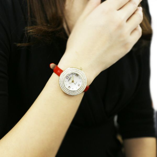 ラウンドフェイスクリスタルガラスデザインベルト腕時計/9160026