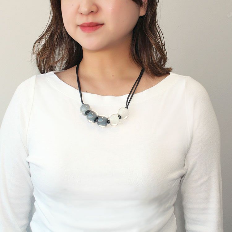 上質な樹脂、ポリエステルレジンの特性を活かし、ガラスのような質感を再現しつつも、軽くてつけやすいことで人気を博しています。肌に触れる部分に金属を使用していないため、アレルギーの方でも安心してお使いいただけます。