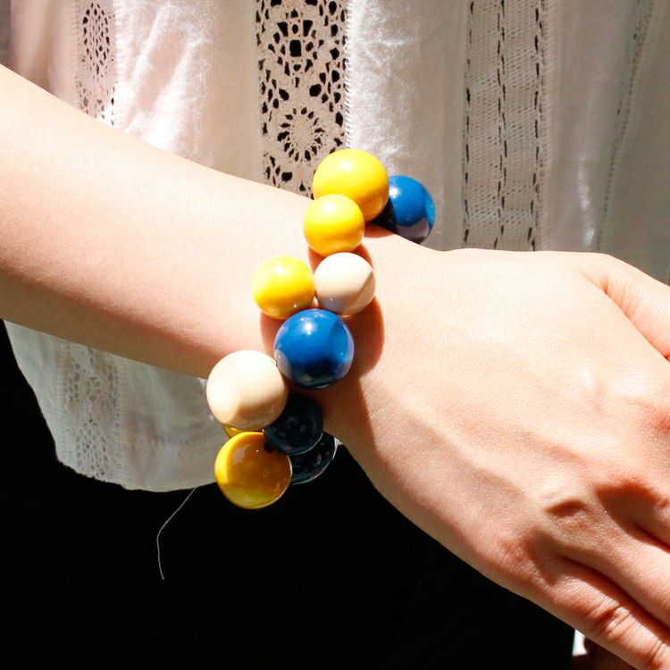 “球”を意味する名前を持つシリーズ。着けているだけでハッピーな気分になれそうな、カラフルでポップなデザインが特徴です。それぞれのパーツは2層になっているのもポイント。こだわりのハンドメイドアクリルジュエリーならではの魅力をお楽しみください。
