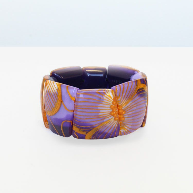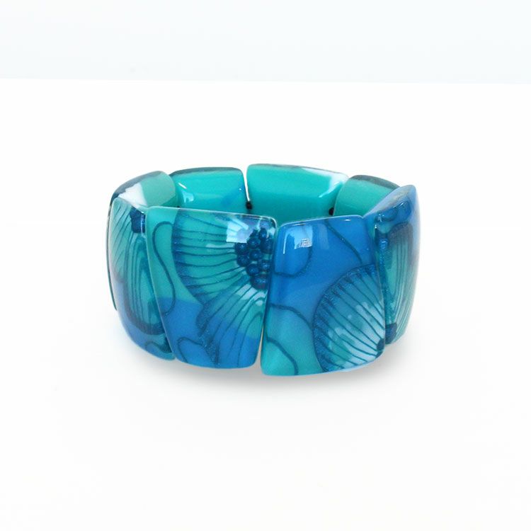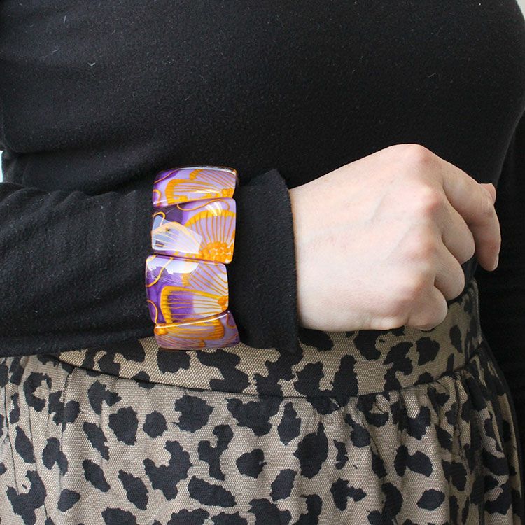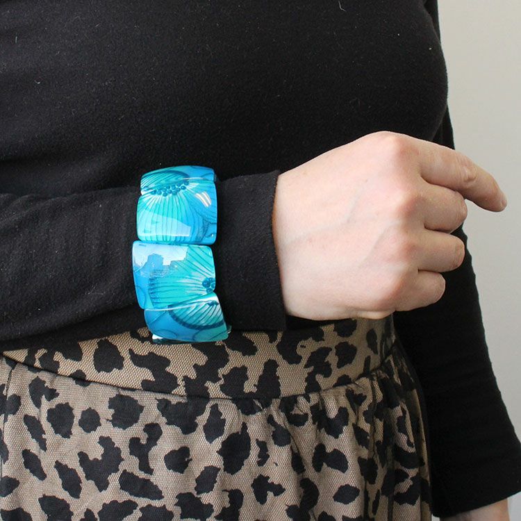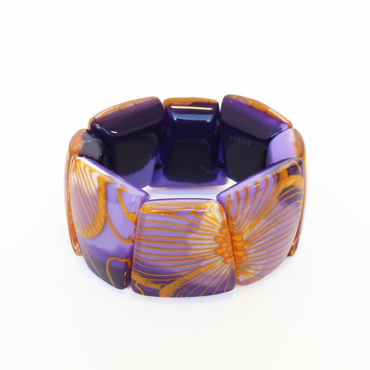 ゴムタイプのブレスレットは付け外しがしやすく、存在感があるのでシンプルなお洋服にもお楽しみいただけます。金属アレルギーの方でも安心してご利用いただけます。