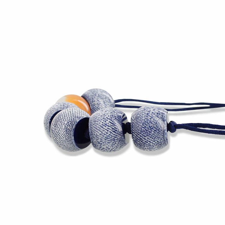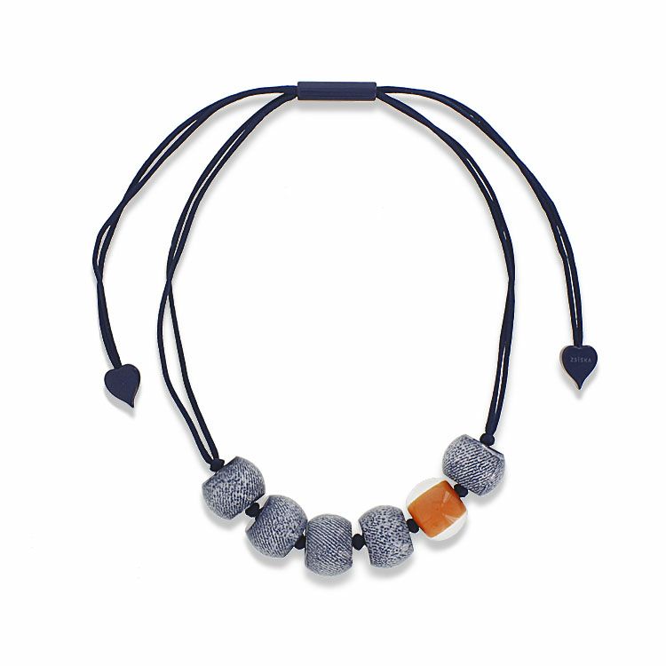 デニム模様のコレクション。本物のデニム生地を閉じ込めたかのように見えますが、1点1点ハンドペイントで模様付けされています。爽やかなホワイトと、差し色にぴったりのオレンジの2色展開です。
