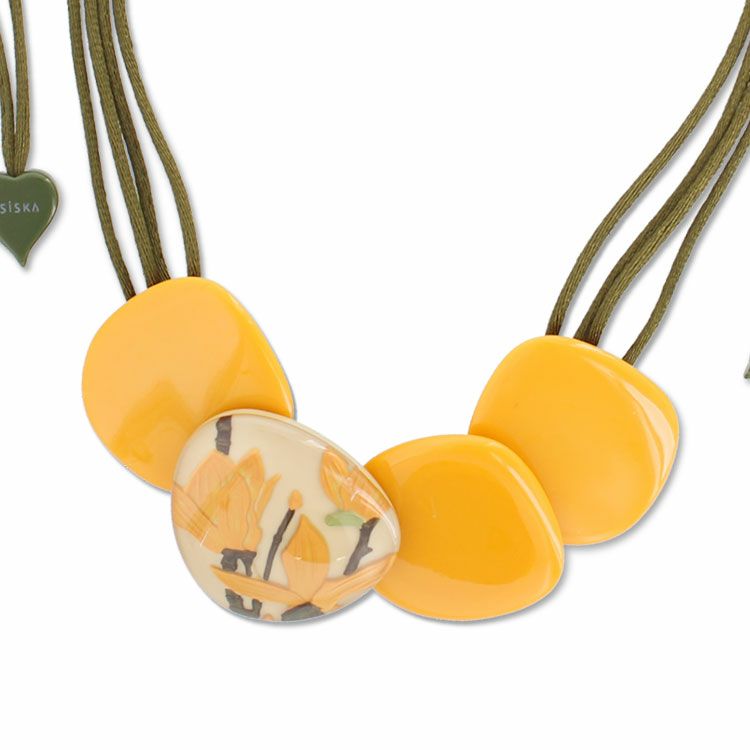 ZSiSKA(シスカ)は、世界15ヶ国以上で展開する、オランダ人女性デザイナーによるポリエステルレジンを使用したアクセサリーブランド。ひとつひとつのパーツの作成から、着色、磨きに至るまで、そのほとんどをタイの自社工場でハンドメイドで行っているこだわりのジュエリーブランドです。ガラスのような質感を再現しつつも、軽くてつけやすいことで人気を博しています。 色鮮やかな色彩と、シーズンごとに発表される個性的なモチーフ で時に遊び心のあるデザインを豊富に取り揃えています。