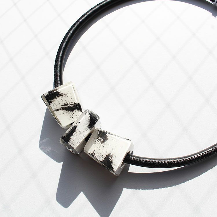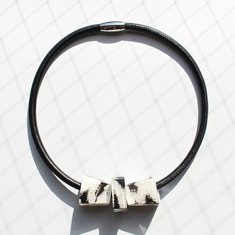 上質な樹脂、ポリエステルレジンの特性を活かし、ガラスのような質感を再現しつつも、軽くてつけやすいことで人気を博しています。肌に触れる部分に金属を使用していないため、アレルギーの方でも安心してお使いいただけます。