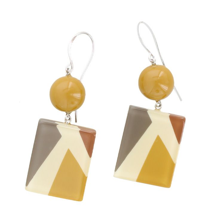 トーンに変化を持たせた一つのカラーをアイボリーホワイトで区切った幾何学柄のピアス。