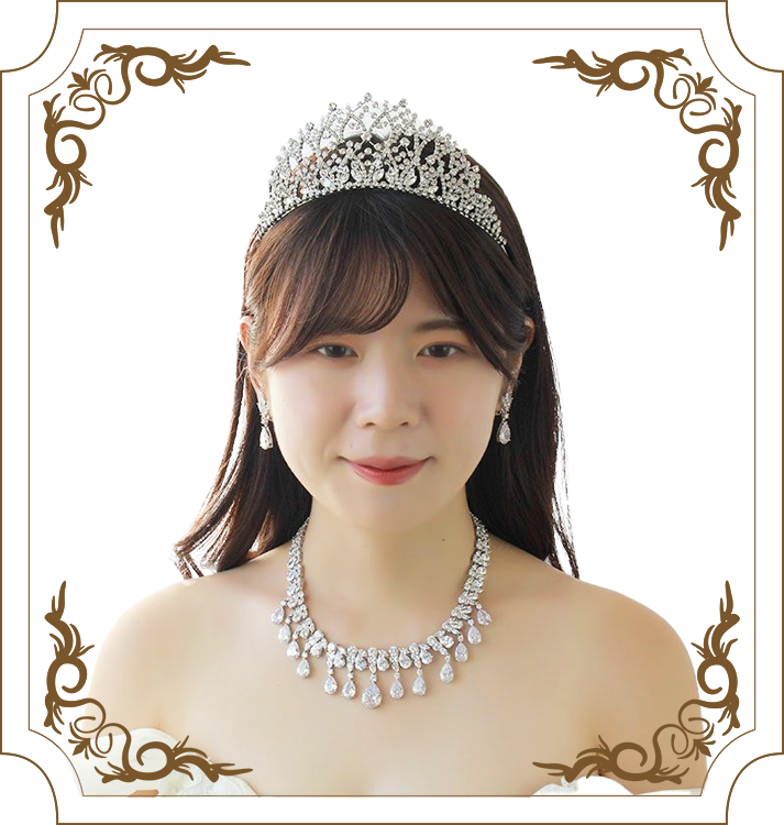 丸みを帯びたカーブが特徴で上品でかわいらしい雰囲気を叶えるプリンセスティアラは、映画のプリンセスがつけているような王道タイプ。ゴージャスなドレスやシンプルなドレスなど、どんなタイプにも似合います。真ん中に高さがあるタイプは、縦のラインを強調するので丸顔の方におすすめです。