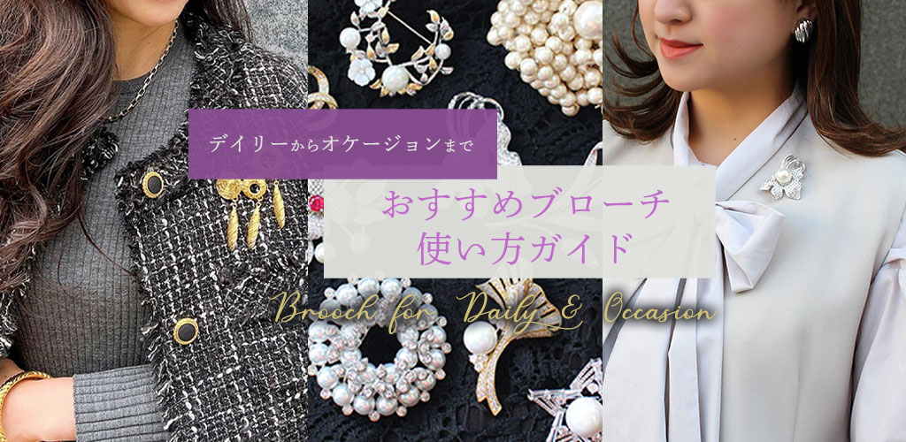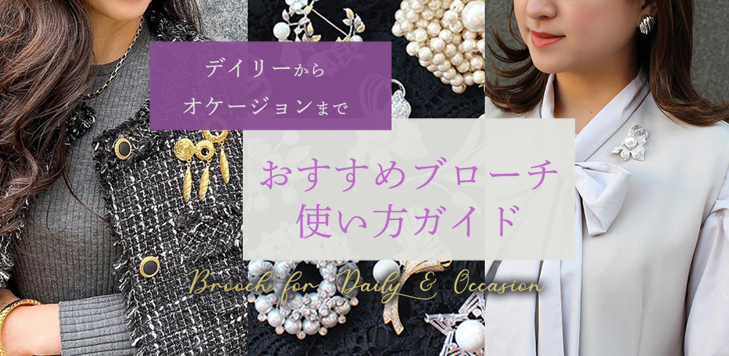 ブローチは、見慣れた服に新鮮さを出したい時や、定番コーデに個性を出したい・差をつけたい時にはもってこいのアクセサリー。フェミニン、エレガント、ポップなどブローチのデザインや素材を変えるだけでコーディネートの印象が変わるので、旅行や帰省時にもぜひ持って行きたいアイテムです。付け方のバリエーションを増やして、ブローチを取り入れたオシャレをより一層楽しんでみてはいかがでしょうか。
