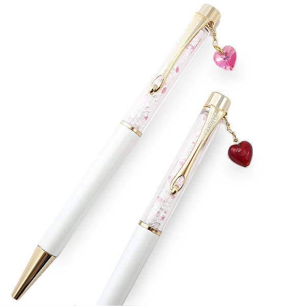 パールホワイトのボディにローズカラーを混ぜ込んだクリスタルが輝くロングセラーのボールペン。紙製ボックス入りでリフィル可能なのでギフトにもぴったりです。