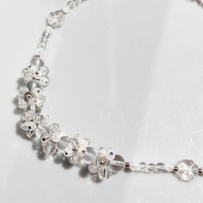 日本製クォーツクローバー×フラワーモチーフショートネックレス