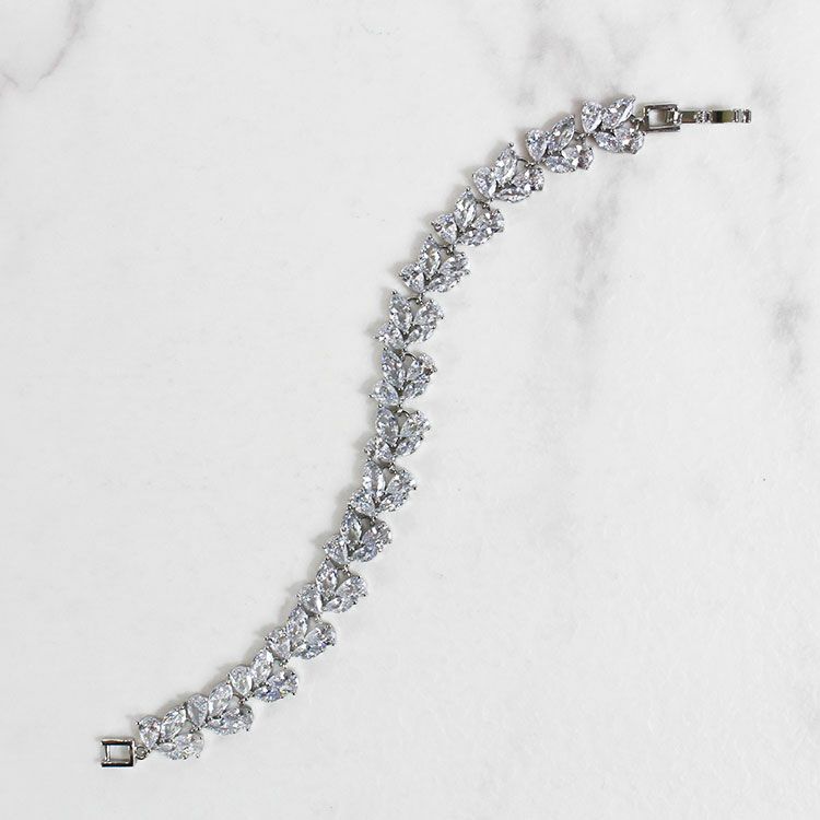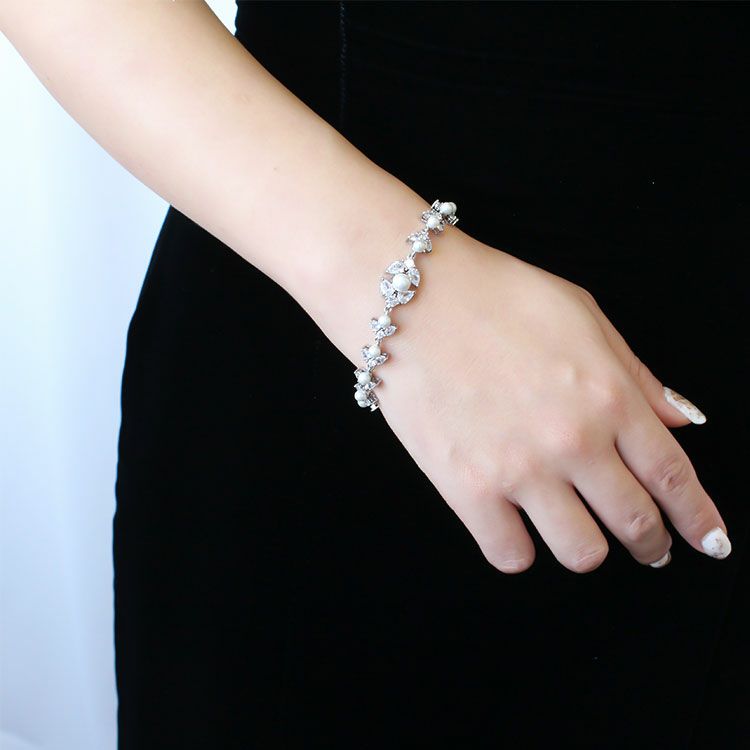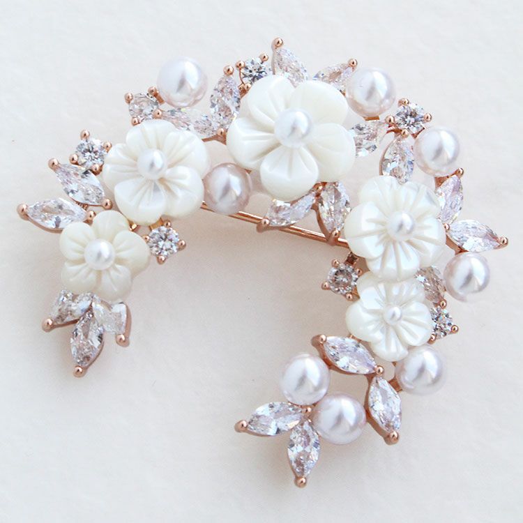 キュービックジルコニア×パール三日月モチーフデザインブローチ