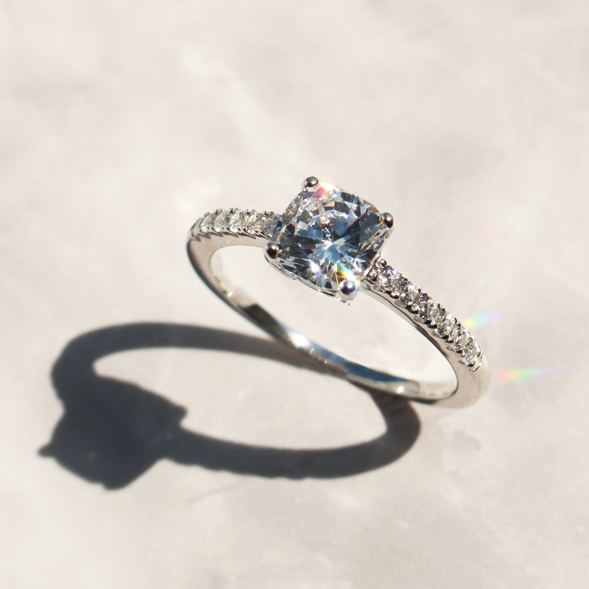 《Exclusive》クッションカットジルコニアハーフエタニティリング
