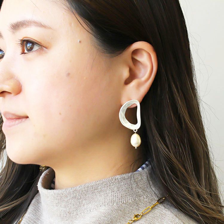 マットメタル×淡水パールピアス/3220003【CLASSY. 掲載】